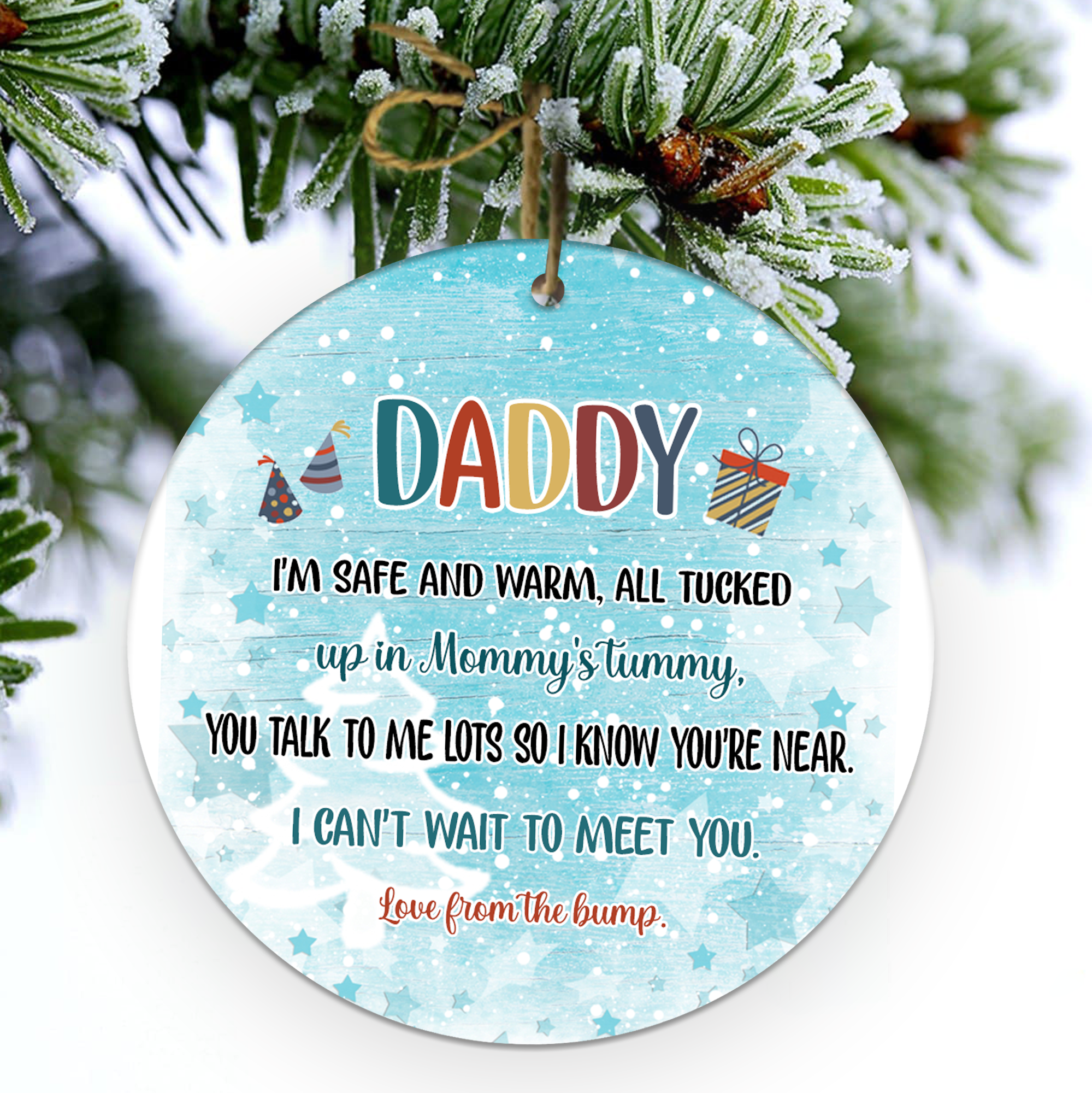 Home › Future Daddy Christmas Gifts › Gift For Future Daddy I'm Safe And Warm All Tucked Up In Mommy's Tummy You Talk To Me Lots So I Know You're Near Ornament - NT - NN2711213