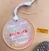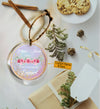 The round circle ornament  complete with gold hanging cord, this lightweight ceramic ornament will not weigh down branches. Get ready for this holiday season!