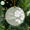 The round circle ornament  complete with gold hanging cord, this lightweight ceramic ornament will not weigh down branches. Get ready for this holiday season!