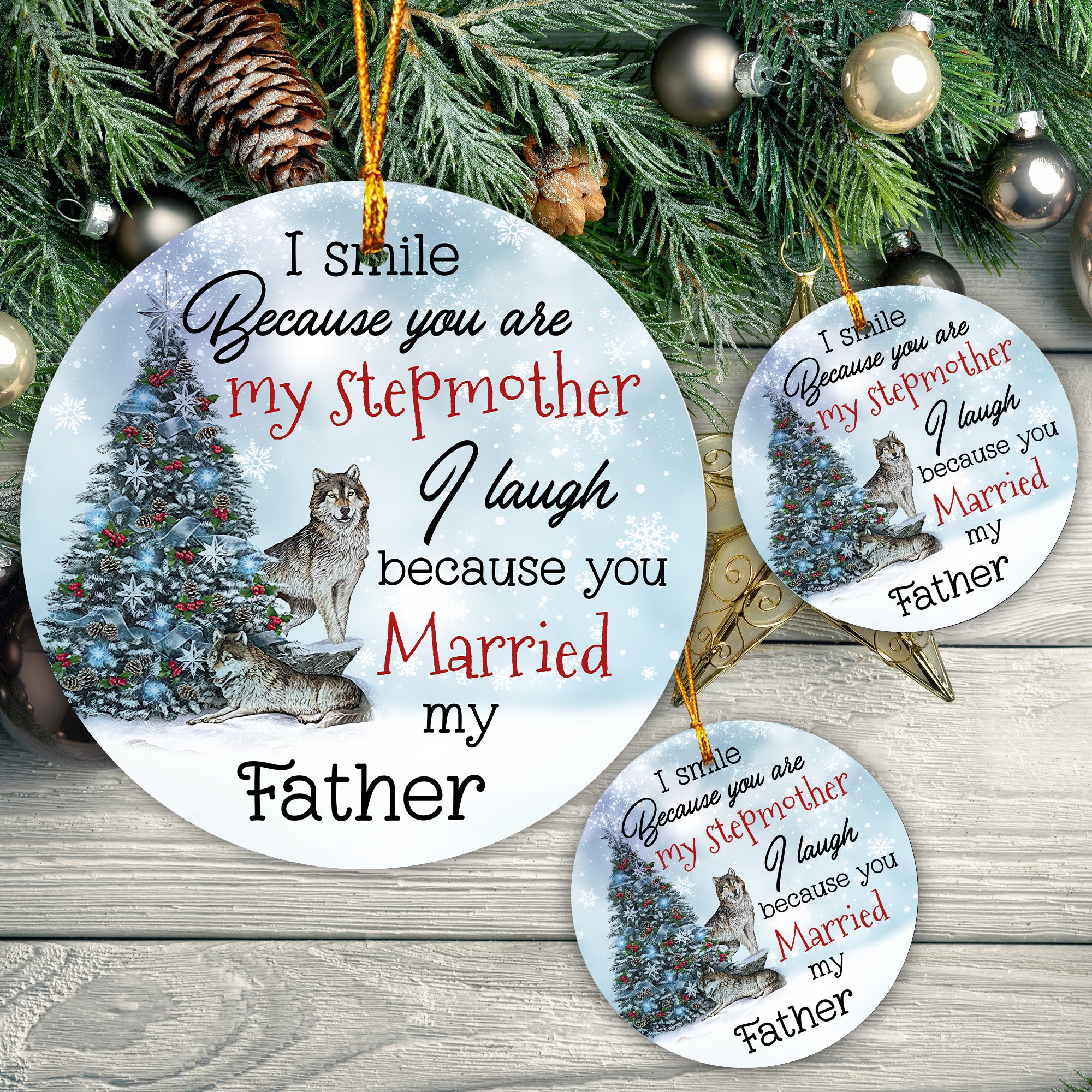 Home › Ornament › Gift For Stepmom I Laugh Because You Married My Father Ornament - Mc