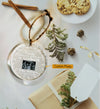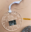 The round circle ornament  complete with gold hanging cord, this lightweight ceramic ornament will not weigh down branches. Get ready for this holiday season!