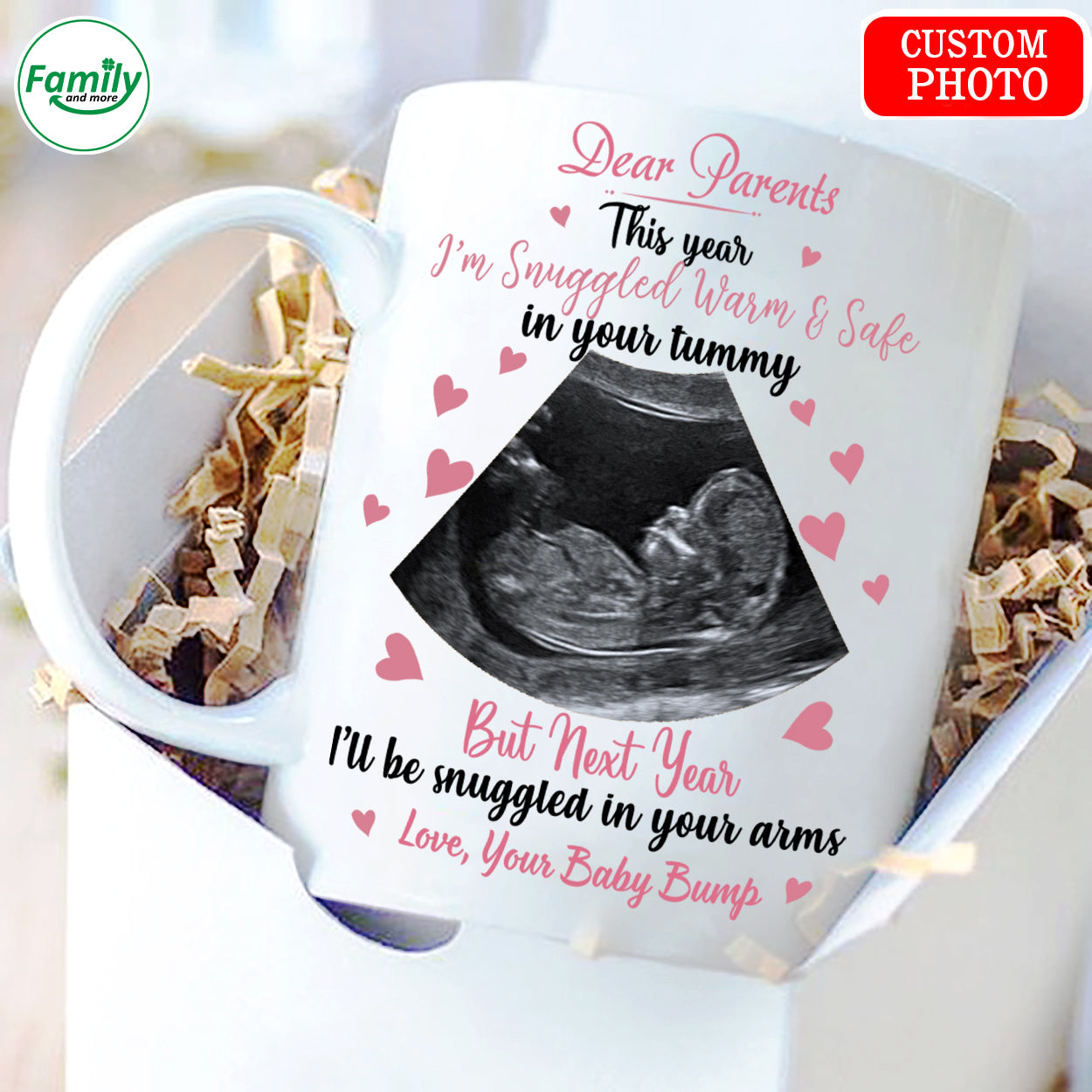 Dear Parents I'll be Snuggled in your amrs Mug