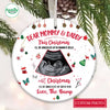 The round circle ornament is complete with a gold hanging cord, this lightweight ceramic ornament will not weigh down branches. Get ready for this holiday season!